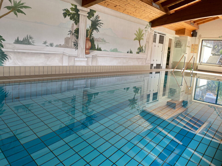 Unser Wellness-Bereich mit unserem um die 30 °C temperierten Hallenbad (4,5 × 10 m) lädt zum optimalem Relaxen ein. Darüber hinaus bietet unsere Fass-Sauna sowie unsere kleine finnische Sauna und nicht zu vergessen zwei Infrarot-Wärmekabinen verschiedenste Optionen, um wieder Kraft für den Alltag zu tanken.